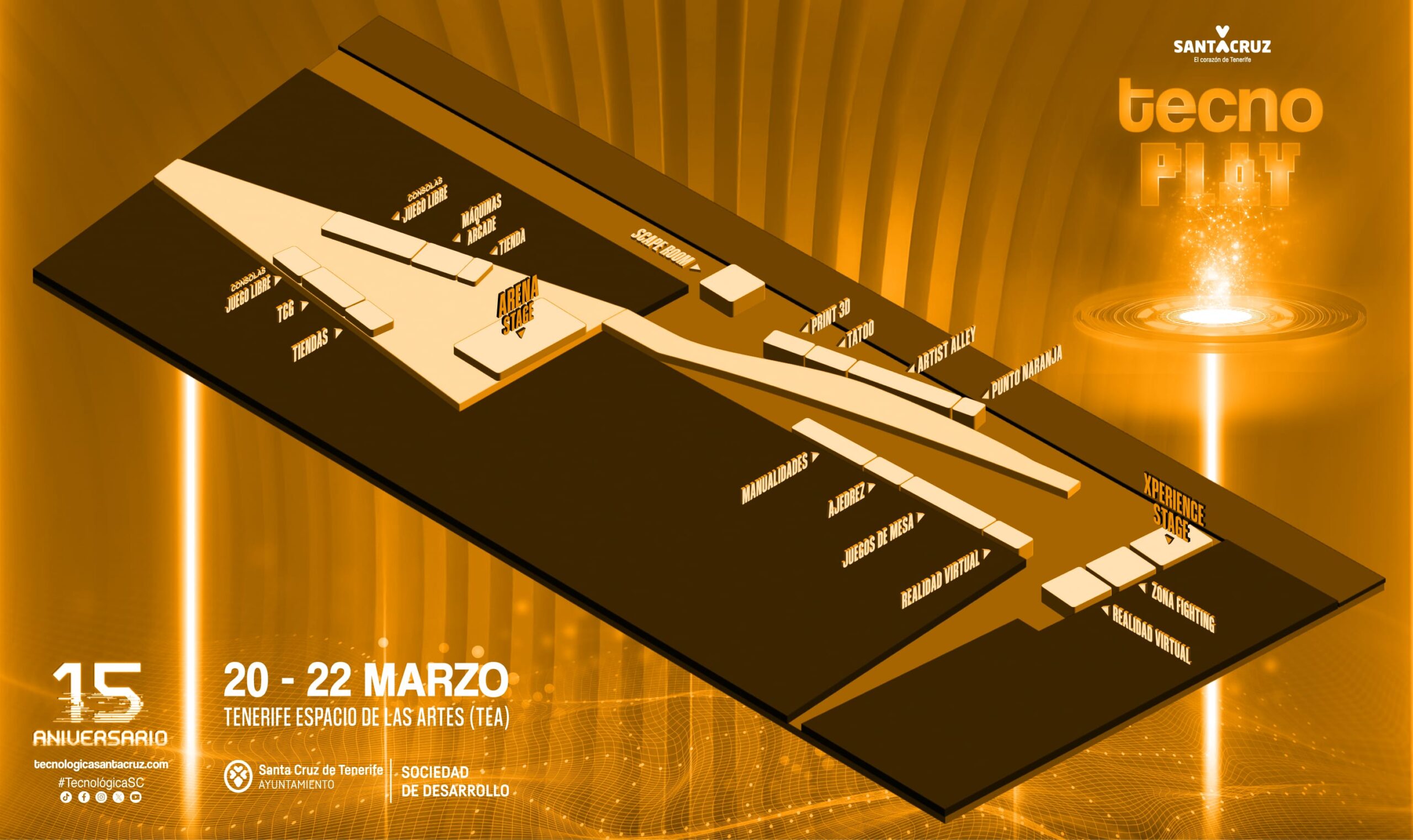 Tecnoplay es la sección enfocada al gaming, la cultura asiática y el entretenimiento digital de Tecnológica Santa Cruz. Un espacio interactivo y gratuito en el TEA donde se combinan competiciones, talleres, exhibiciones y juego libre en un ambiente inmejorable.